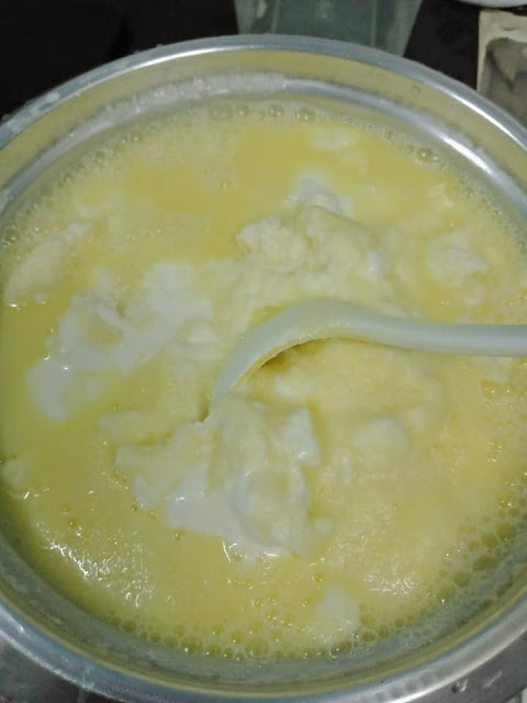 ▶️ Masakkan gula dan 2 cawan santan atas api. Kacau hingga gula larut. Matikan api. Sejukkan sekejap.